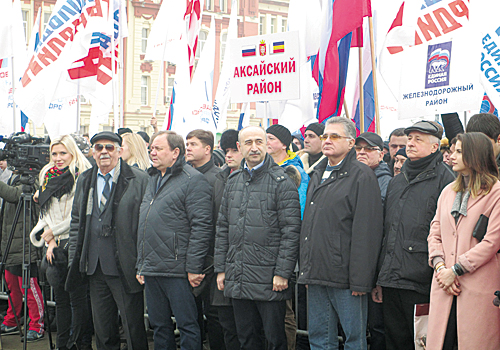 Новость в рубрике: Депутаты, Избранное, Общественные организацииВ субботу, 3 февраля на Театральной площади в Ростове-на-Дону прошел митинг-концерт «Россия – за мир!» в рамках Всероссийской акции «Россия в моем сердце». «Свыше пяти тысяч человек с флагами и плакатами вышли на площадь, чтобы отдать дань памяти героям Великой Отечественной войны, тем, кто стоял за Сталинград, а в дальнейшем гнал фашистов до самого Берлина. К ним присоединились активисты Аксайского района – лидеры общественных организаций, члены Аксайского местного отделения партии «Единая Россия» и движения «Молодая Гвардия».
