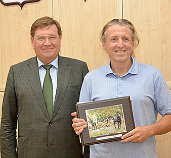 Глава Администрации Аксайского района встретился с архитекторами, скульптором и подрядчиками, создавшими в г. Аксае сквер «Кони». Во встрече приняли участие глава администрации г. Аксая А.В. Головин, руководитель ООО «Дорстрой» С.В. Рожков, скульптор Дмитрий Лындин, строители сквера. Всем причастным к созданию в Аксае новой комфортной зоны отдыха В.И. Борзенко вручил памятные подарки.