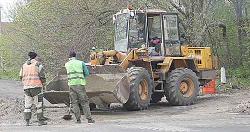 Засыпали асфальтовой крошкой, которую сняли при ремонте ул. Советской, но это не решило проблему.