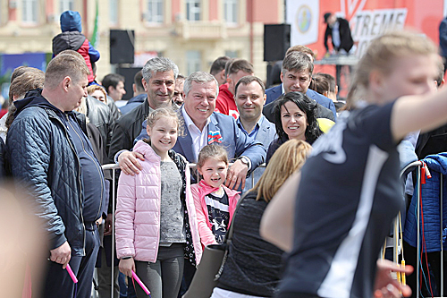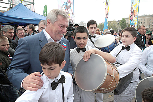 Перед церемонией награждения в Ростове-на-Дону состоялся концерт победителей 18 Дельфийских игр, первомайские спортивно-массовые мероприятия. Губернатор осмотрел спортивные площадки, развернутые на Театральной площади, пообщался со спортсменами.
