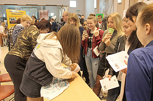 Для ребят в холле Дома культуры была организована целая ярмарка профессий – в фестивале приняли участие представители престижных вузов и ссузов, преимущества своей деятельности показывали и приглашенные работодатели. Было представлено более 40 профессий, несомненно, важных и интересных.