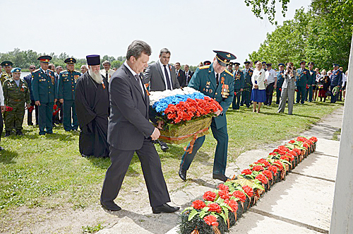 Собравшиеся почтили память погибших минутой молчания, вспоминая тех, кто бился с врагом на фронте, кто воевал в партизанских отрядах, кто страдал в фашистских лагерях, тех, кто без сна и отдыха трудился в тылу, кто дошел до Берлина и Праги, тех, кого сегодня нет с нами, деревни, сожженные дотла, поселки, стертые с лица земли, сотни разрушенных, но непокоренных городов…