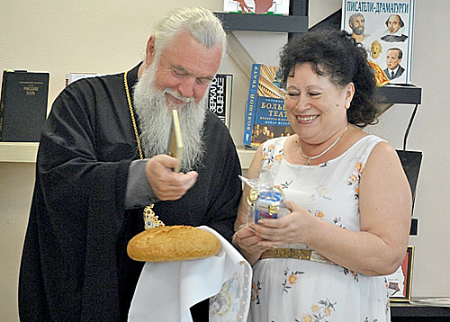Есть в библиотеке добрая традиция – создавать альбомы. В библиотечном архиве есть альбомы семейные, творческие… Но вот православного альбома до этого дня еще не было. На этой замечательной встрече появилась прекрасная возможность такой альбом создать. На самой первой странице этого альбома была размещена фотография Благочинного Аксайского округа протоиерея Геннадия Макаренко, прекрасного семьянина, отца семи сыновей и трех дочерей. Всегда рядом с отцом Геннадием его супруга Тамара Владимировна. От имени всей своей большой семьи отец Геннадий пожелал жителям района, чтобы больше в аксайских семьях рождалось детей, чтобы они выросли достойными людьми.