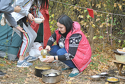 И вот настало 11 октября! Уяснив технику безопасности, дружные команды направились в любимое место, где царила прекрасная золотая осень. В Мухиной балке состоялся районный туристический слет. Организатором его стал Центр творчества детей и молодежи Аксайского района. Команды из двенадцати школ приехали к девяти утра. Школьники под руководством педагогов разбили лагерь и установили палатку. Один из первых конкурсов – исполнение туристической песни. К нему команды подготовились заранее. Жюри оценивало соответствие тематике, качество исполнения, музыкальное сопровождение, авторство и оригинальность текста. Лучше всех с домашним заданием справилась команда Ленинской СОШ.