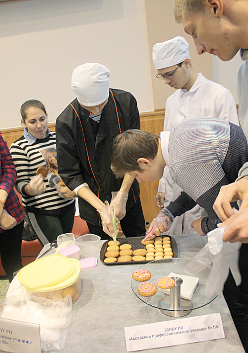 После действие перенеслось в районный Дом культуры «Факел», где развернулась интерактивная выставка предпринимателей и образовательных организаций. Так, учащиеся Аксайского технологического техникума представили профессию парикмахера, профессиональное училище № 56 организовало мастер-класс по рисованию глазурью на сахарном печенье, а студия современных детей и родителей «Цитрус» дала возможность разгадать логические задачи и головоломки.