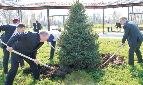 А.В. Ремизов, Е.В. Галицин, В.Г. Гончаров вместе с учащимися Старочеркасской СОШ высадили ель и 14 берез.