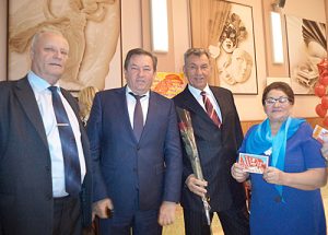 В день 100-летия Комсомола 29 октября 2018 года в РДК «Факел» собрались комсомольцы прошлых поколений. На снимке (слева направо): А.Л. Пу-гачев (станицы Мишкинская), Виктор Григорьевич и Александр Гри- горьевич Шумеевы, Любовь Петровна Теряева (станица Мишкинская).