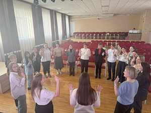 Советники директоров по воспитанию гимназии № 3 г. Аксай (Татьяна Алексеевна Передельская) и Грушевской школы (Дарья Олеговна Чернова) провели мастер-класс «Игра как универсальный инструмент» для школьников и советников.