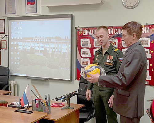 После торжественной церемонии Роман Сергеевич провел урок мужества со своим отрядом. Юнармейцы поближе познакомились с героем, поговорили на тему: «Что значит служить Отечеству?».