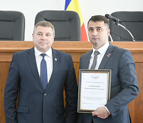Председатель Собрания депутатов, глава Аксайского района Алексей Валерьевич Головин выразил слова признательности представителям местного самоуправления и вручил Благодарственные письма Собрания депутатов Аксайского района, депутатов Заксобрания Ростовской области А.С. Андреевой и И.П. Петровского. Поздравить специалистов с праздником и вручить им Благодарственные письма пришел и депутат Заксобрания Донского края С.В. Рожков.