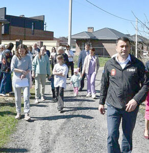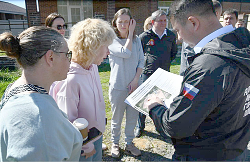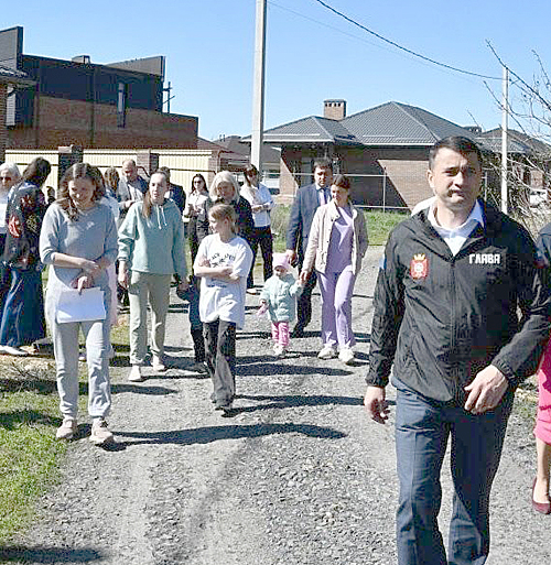 | Е.Н. Камфарин с жителями поселка. / ФОТО Юлии Фроловой | |