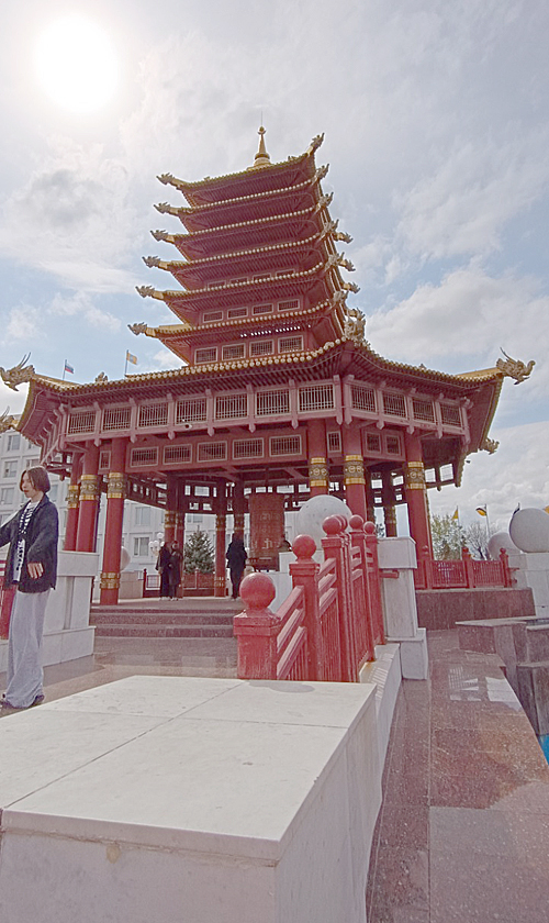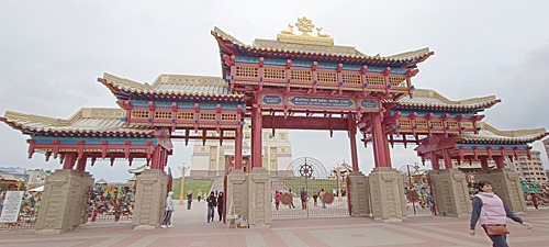 По пути следования автобуса увидели практически построенный кафедральный собор равноапостоль-ных Кирилла и Мефодия – красивый и величественный, купола видны из- далека. Привлекла внимание Ступа Просветления – довольно внушительных размеров сооружение, внутри которого, как нам рассказала экскурсовод, хранятся ценные буддийские реликвии. Вокруг этой ступы, коих в Калмыкии еще имеется достаточно, но эта – самая из них большая, в направлении часовой стрелки ходили люди. Как опять же объяснила экскурсовод, считается, что, если совершить определенное количество кругов, произнося при этом свое сокровенное желание, оно непременно сбудется.