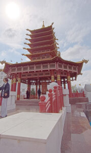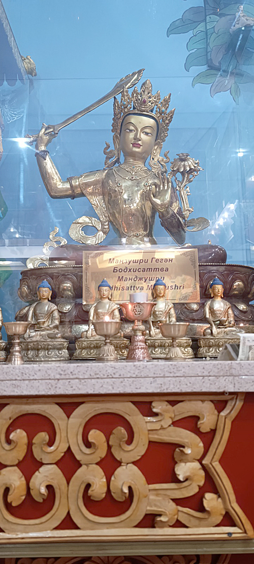 Затем мы отправились немного за город, в этногородок, где я послушала горловое пение, попыталась выучить калмыцкий танец, попробовала калмыцкий чай, впервые на верблюде проехалась. Недалеко от городка расположен хурул Сякюсн-Сюме, где мое внимание привлекла не столько внушительных размеров статуя Будды, сколько красота росписей на стенах! До 2005 года это был крупнейший буддийский храм Калмыкии. В 2005-м построили в самой Элисте другой, еще больший хурул – Золотую обитель Будды Шакьямуни. Он стал крупнейшим в Европе – высотой примерно с 20-этажный дом, высота покрытой сусальным (как утверждает местный экскурсовод) золотом статуи Будды в молельном зале тоже впечатляет! Как и музей, что расположен на первом этаже хурула.