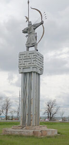 На пути следования останавливались у памятника «Исход и Возвращение» авторства Эрнста Неизвестного. Монумент посвящен депортации калмыцкого народа в Сибирь. Сгусток из скорби и страдания получился, на мой взгляд, у известного скульптора…
