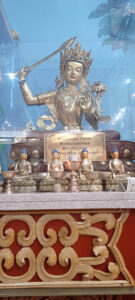 Много муралов, встречались и мозаичные изображения, на фасадах многэтажек с изображением национальных героев, врачей во время пандемии, священных животных, орнаментов. Проезжали кварталы малоэтажной застройки – некоторые горожане свои дома покрыли крышами с загнутыми краями в стиле пагоды, а в одном довольно большом дворе наблюдали сооружение – я его назвала «домашний хурул»!