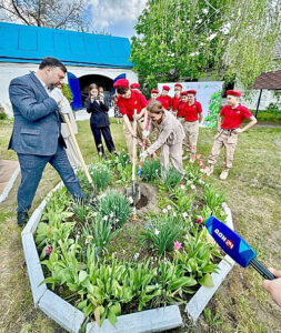Новость в рубрике: Защита Отечества, ИзбранноеМинистр природных ресурсов и экологии Ростовской области Михаил Валерьевич Фишкин, заместитель главы Администрации Аксайского района Ольга Николаевна Пушкина, директор Аксайского военно-исторического музея Ольга Владимировна Григоренко, а также сотрудники музея и минприроды Ростовской области, юнармейцы города Аксая приняли участие в посадке тополя на территории музея. Этот тополь – третье дерево Сада Памяти в честь 80-летия Победы, высаженное в Ростовской области.