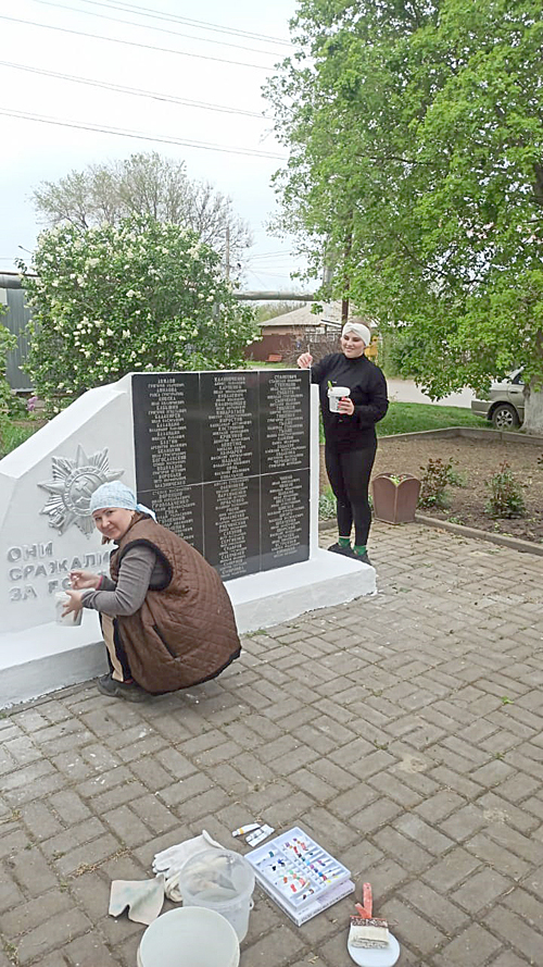 Жители хутора Малый Мишкин приняли участие в акции «Дон помнит». Изготовили и установили подставку для венков, очистили территорию от сорной растительности, произвели полив цветов и деревьев.