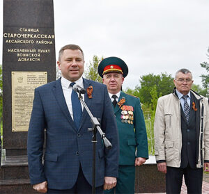 – Для Аксайского района это большое и значимое событие. Станица имеет многовековую, прославленную подвигами защитников Отечества историю, начиная от военных походов XVII века, включая героизм, проявленный жителями станицы в годы Великой Отечественной войны. Старочеркасск был и остается местом, где проявились воинская доблесть, героизм и мужество донских казаков. Этот памятный знак – напоминание для молодежи, для всех последующих поколений о героизме наших предков, которые сделали все возможное и невозможное, чтобы сохранить единство и целостность нашего государства, – сказал при открытии памятного знака глава Администрации Аксайского района К.С. Доморовский.