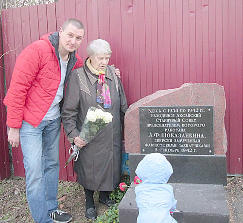 Страшное время оккупации пришлось пережить и тем, кто родился в начале двадцатого века. Вернемся немного назад, к дому номер 37 по улице Карла Либкнехта, и увидим здесь еще одну мемориальную доску. В этом здании располагался станичный совет, председателем которого являлась Александра Федоровна Показанкина. Работая в тылу, она старалась много делать для победы, и за это была зверски замучена фашистами в Ростовской тюрьме в 1942 году. В начале апреля года 2023-го к нам в Аксай, к следопытам первой Аксайской школы, приезжали правнук Александры Федоровны с праправнуком, им показали школьный музей, экспонаты о жизни и работе их героической бабушки и прабабушки.