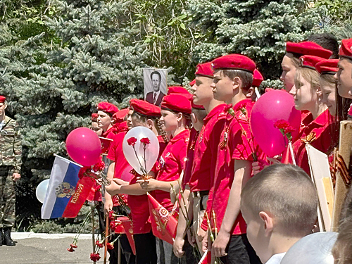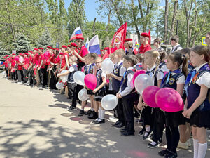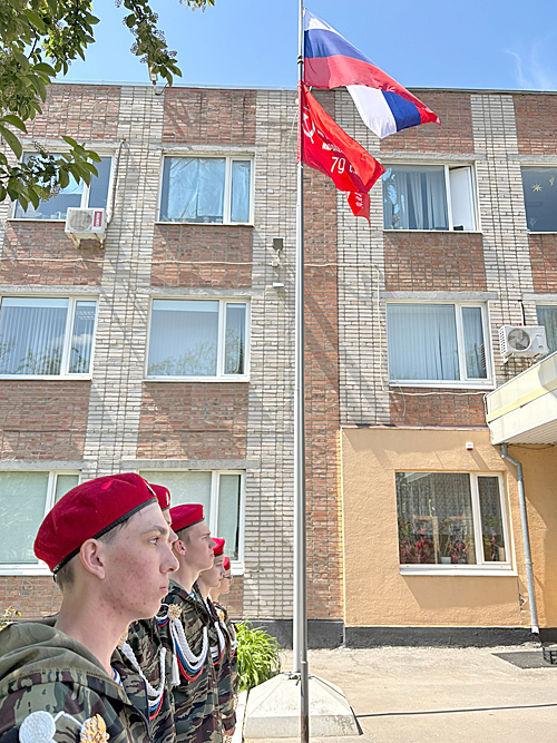 Во дворе образовательного учреждения состоялся торжественный митинг, в ходе которого была поднята копия Знамени Победы. Участники мероприятия почтили память героев, внесших неоценимый вклад в общую Победу народов СССР.