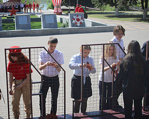 Новость в рубрике: МолодежьВ честь Дня Победы 6 мая на площади Героев прошла значимая патриотическая акция в рамках Всероссийской инициативы «Георгиевская ленточка». Ученики школы №1 приняли активное участие в украшении МАФ «Победа», обвязав его символической георгиевской лентой.