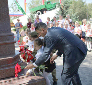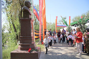 В торжественном мероприятии приняли участие представители местной администрации во главе с главой администрации Аксайского городского поселения Евгением Камфариным, сотрудники администрации и дома культуры «Молодежный», казаки Аксайского юрта, воспитанники детских садов и юнармейцы.