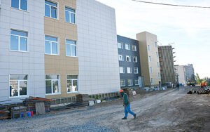 На основном здании продолжаются работы по разводке внутренних коммуникаций, ведутся отделочные работы: оштукатуривание стен, стяжка полов, уклад-ка напольной плитки и плитки в санузлах.