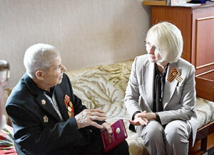 А.А. Чайников и В.В. Абрамченко тепло поблагодарили ветерана за вклад в Великую Победу и доблестный труд в мирное время.
