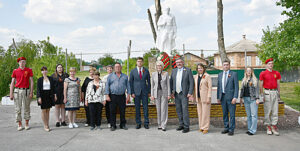 Возложение цветов к мемориалу в х. Рыбацком (в центре слева направо: А.Г. Ягольник, В.В. Абрамченко, А.А. Чайников, О.Н. Пушкина, Я.Л. Чернышев).