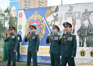 Под звуки Гимна Российской Федерации в исполнении оркестра Южного военного округа, был поднят флаг соревнований, после чего спортивные команды прошли торжественным маршем и заняли свое место на трибунах.