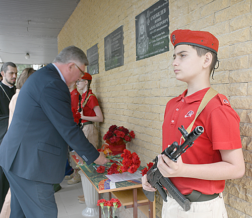 Слова благодарности нашим воинам выразил заместитель председателя Совета ветеранов Аксайского района В.Г. Давыдов. Торжественное право открыть мемориальную доску и парту героя было предоставлено матери Юрия Скобелева Ирине Александровне Писаревой и сыну Святославу. Сотни гвоздик легли на парту во время возложения цветов. Алые соцветия как капли крови напоминали всем нам о том, что где-то там, на передовой, наши бойцы отдают свои жизни за то, чтобы мы жили под мирным небом.