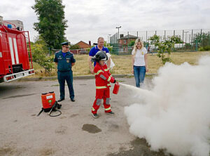 Ребятам напомнили правила пожарной безопасности, ознакомили их с пожарной техникой и оборудованием, а также научили их пользоваться огнетушителями.