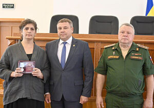 Глава Администрации Аксайского района К.С. Доморовский вместе с военным комиссаром Аксайского района Г.П. Сурковым вручили награды родным наших земляков