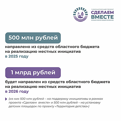 – «Сделаем вместе» — уникальный проект, который за пять лет своего существования научил нас – жителей, исполнительную и законодательную власть — вместе договариваться и решать текущие задачи, создавать точки притяжения. Принятое временно исполняющим обязанности губернатора Юрием Борисовичем Слюсарем решение об увеличении финансирования общественных инициатив в два раза позволит реализовать на нашей территории большее количество проектов. Важно, что при такой системной работе достигается максимальная прозрачность расходования средств и контроль за выполнением работ — это сказывается на уровне доверия к власти и снижает коррупционные риски, — подчеркнула Анна Степановна.