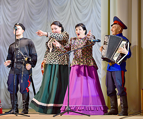 А в это время на сцене Мишкинского ДК проходил гала-концерт. Здесь собрались лучшие творческие коллективы Донского края, чтобы подарить зрителям праздник настоящего казачьего многоголосия. Приятно, что открыли концерт наши – семейный ансамбль казачьей песни «Быть добру» из Дома культуры «Дружба» г. Аксая (руководитель О. Терещенко).