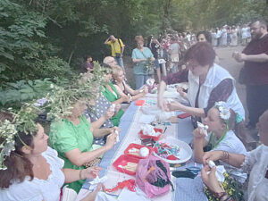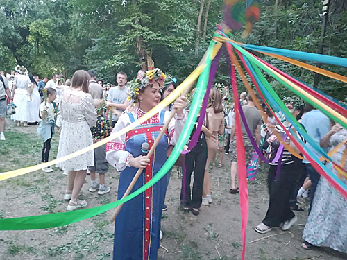 Во время празднования вспомнили древний обычай. На Руси молодые в ночь на Ивана Купалу выбирали себе названных сестер или братьев, то есть кумились. Названные кумовья должны были помогать и поддерживать друг друга и весь год не ссориться.
