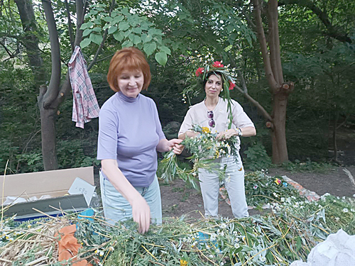 А на широкой поляне уже расположились травницы. Они заготовили столько ивняка, полевых цветов, что каждый желающий смог сплести венок! Мы тоже не прошли мимо!