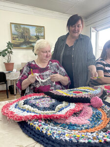 Особого внимания заслуживает Людмила Васильевна Яровая, которая в свои 73 года не только активно участвует в работе мастерской, но и отметила здесь свой день рождения. На ее счету уже четыре созданных коврика – настоящее достижение!