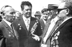 Т.Ф. Форзун (первый слева) на встрече ветеранов в честь 30-летия Великой Победы. 9 мая 1975 г. / ФОТО из архива редакции