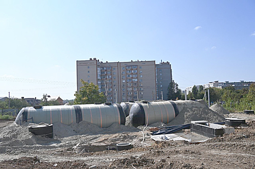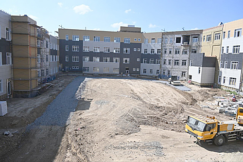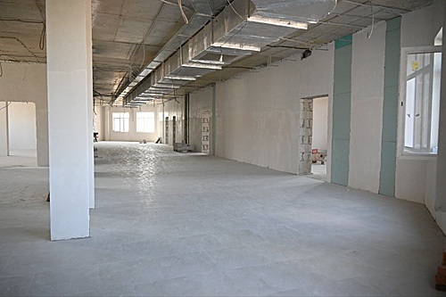 В настоящее время на объекте продолжаются работы по прокладке внутренних и внешних коммуникаций, завершено устройство ливневой канализации, на 50 процентов выполнено заполнение пожарных резервуаров, завершено оштукатуривание стен в корпусах А, Б, В и спортивном зале, продолжаются сантехнические работы и укладка плитки в санузлах.