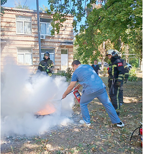 Основная цель тренировки заключалась в отработке навыков тушения открытого огня с помощью огнетушителей. Медицинские работники не только вспомнили теоретические знания, но и на практике применили различные типы огнетушителей, закрепив необходимые умения в реальных условиях.