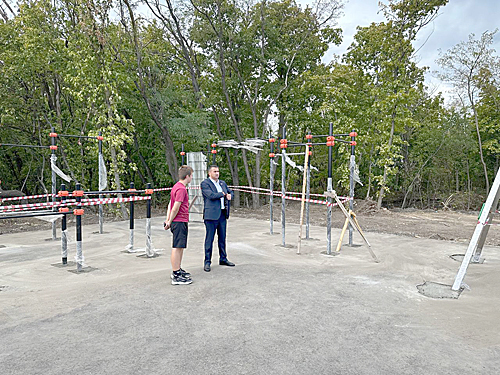 Глава администрации города Аксая Евгений Камфарин проверил ход работ на новой детской площадке в микрорайоне Алексеево