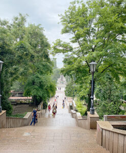 Общая длина сооружения составляет 108 метров, а ширина около 6,5 метра. Лестница насчитывает 188 ступеней (и мы их преодолели!), распределенных по 14 маршам. Первоначально ступени были выложены из сарматского известняка (ракушечника), придававшего сооружению особый колорит. Однако в ходе реконструкции 2006 года их заменили на гранит.