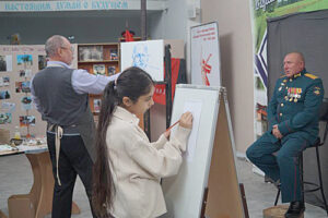 На мероприятии присутствуют представители учреждений и общественных организаций, представители казачества Аксайского юрта ВКО ВВД, молодежь, юные художники и преподаватели.