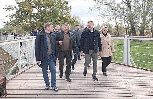 Ознакомившись с работами на причале, Губернатор поинтересовался планами по благоустройству прибрежной территории. Пока концепция не определена окончательно, есть несколько вариантов – с возведением моста либо с оборудованием дамбы в пойменной части прибрежной зоны, доложила заместитель Губернатора – министр транспорта региона Алена Олеговна Беликова.