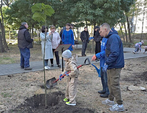 На аллеях появились павловнии, яблони, липы и вишни. К благоустройству территорий присоединились жители районов, семьи бойцов, активисты, «молодогвардейцы», «юнармейцы» и волонтеры.