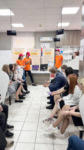 Специалист центра профориентации молодежи Аксайского района презентовала профессии сферы здравоохранения. В рамках проведенного мастер-класса помогла участникам овладеть практическими навыками оказания первой доврачебной медицинской помощи (практическая перевязка «чепец», наложение шины с фиксированием травмированной верхней конечности, пригласила бесплатно посещать профессиональные пробы, чтобы примерить алгоритм различных профессий лично для себя.)