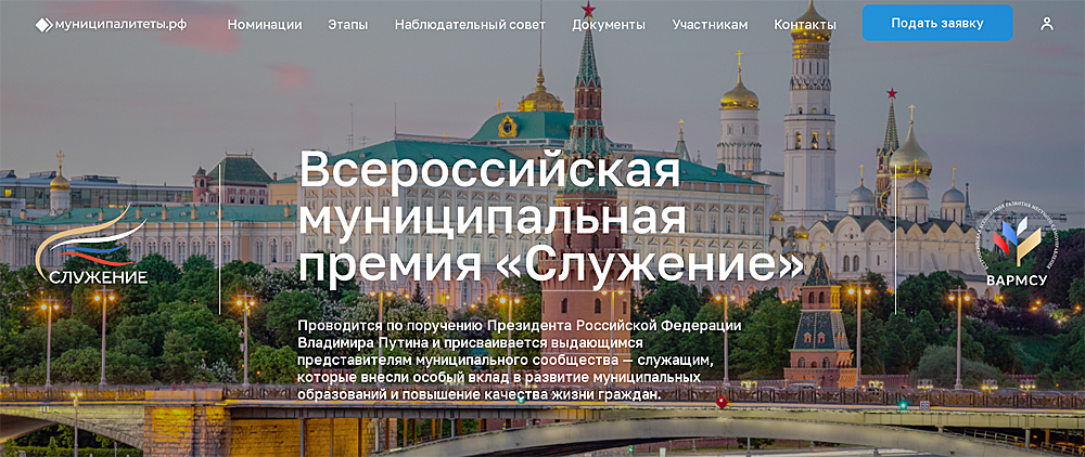 Прием заявок на участие во Всероссийской муниципальной премии «Служение» продолжается