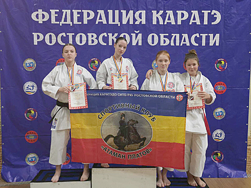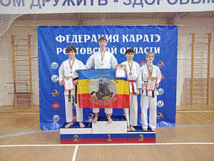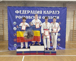 Текст: По итогам турнира воспитанники Аксайской спортивной школы завоевали девять медалей. Результаты по категориям: золотая медаль – Кирилл Кудрявцев (юноши 16+ лет, раздел «ката»), золотая медаль – Малена Казакова (девушки 14–15 лет, раздел «ката»), золотая медаль – Арсений Мезев (юноши 14 – 15 лет, раздел «ката»), золотая медаль – Мария Кравченко (девушки 12–13 лет, раздел «ката»), серебряная медаль – Тимофей Холопов (юноши 14 – 15 лет, раздел «ката»), серебряная медаль – Мирослава Евсеева (девушки 14 – 15 лет, раздел «ката»), бронзовая медаль – Мария Норева (девушки 14 – 15 лет, раздел «ката»), бронзовая медаль – Анна Савенко (девушки 14 – 15 лет, раздел «ката»), бронзовая медаль – Иван Серко (мальчики 8–9 лет, раздел «ката»).
