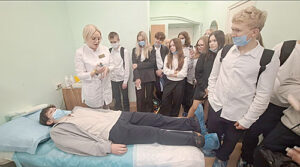 После чего, ребята посетили клиническую лабораторию ЦРБ, экскурсию по которой для них провела ее заведующая И.В. Эль. С отделением лучевой диагностики, его оборудованием, спецификой работы, требованиям к специалистам их познакомил В.В. Кадетов. С назначением отделения функциональной диагностики, его возможностями и оборудованием их познакомила ее заведующая Е.В. Серикова. И в завершение экскурсии В.В. Кадетов рассказал учащимся о роли врачей и среднего медицинского персонала в лечебном процессе, о значении отношений врач — пациент и факторе «призвания» в этой благородной и такой востребованной профессии. И конечно, предложил им задуматься о том, чтобы в будущем специализироваться в области медицины. Надо сказать, что уже сейчас часть школьников готова последовать в медицинские учебные заведения.